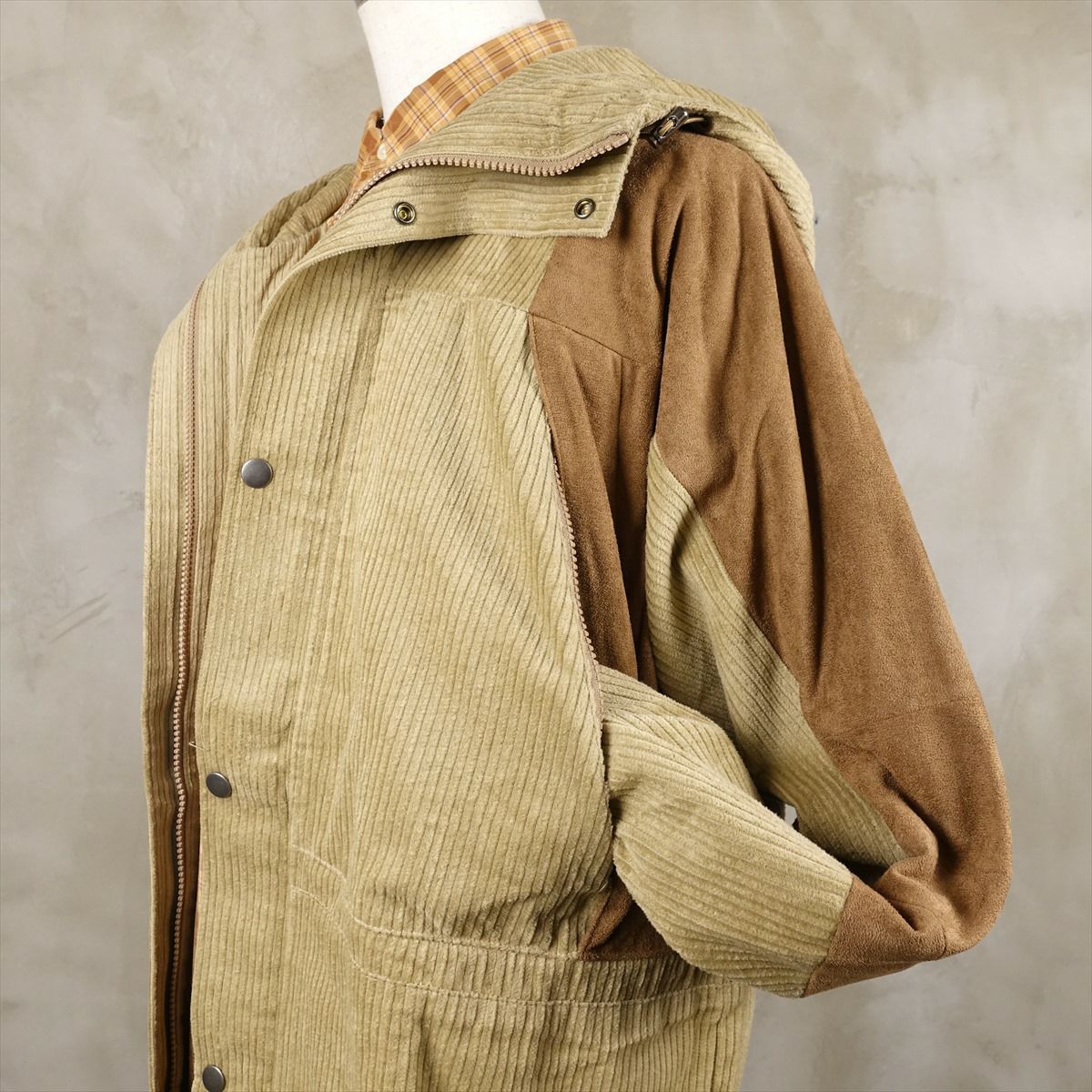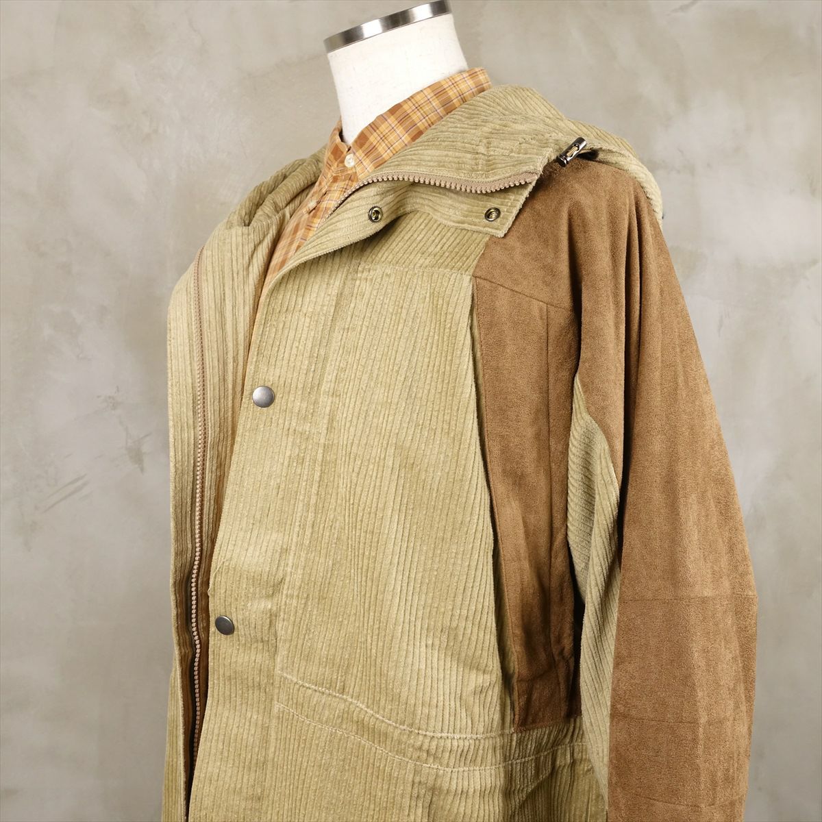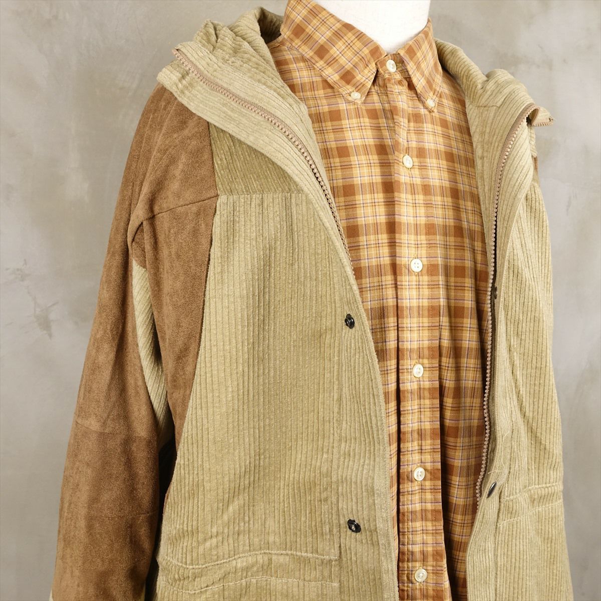 他の画像を見る fafatt ファファット 異素材 コーデュロイジャケット 販売価格 ¥ 14,080 税込 異素材で切り替えたマウンテンパーカーです。コーデュロイとスエードの切り替えデザインにノースフェイスのマウンテンパーカーをサンプリングして作られたアイテムです。カラーリングもベージュ×ブラウンと合わせやい配色なので、カジュアルラインからマウンテンパーカー本来のスポーティーな組み合わせまでお楽しみ頂けます。 カートに入れる お気に入りに登録する