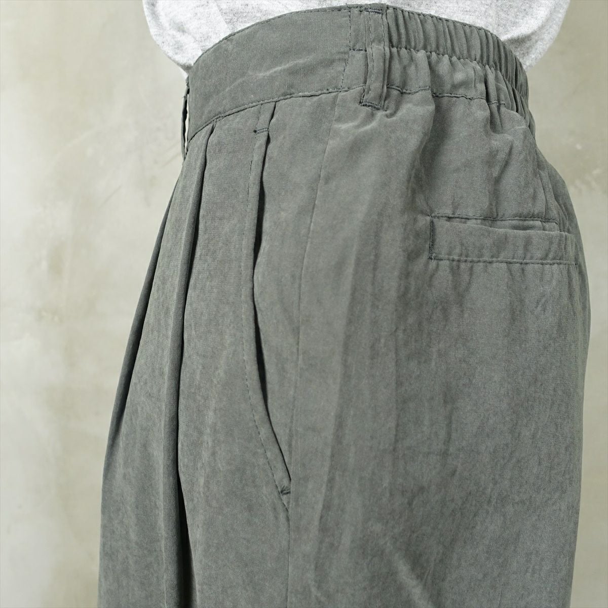他の画像を見る fafatt ファファット タック入りスラックス 販売価格 ¥ 6,380 税込 ウエストにゴムが入ったカスタムスラックス。テーパードの形をしていて太過ぎず細過ぎずな絶妙なシルテっとです。223-21のスラックスとは色違いになっています。 カートに入れる お気に入りに登録する
