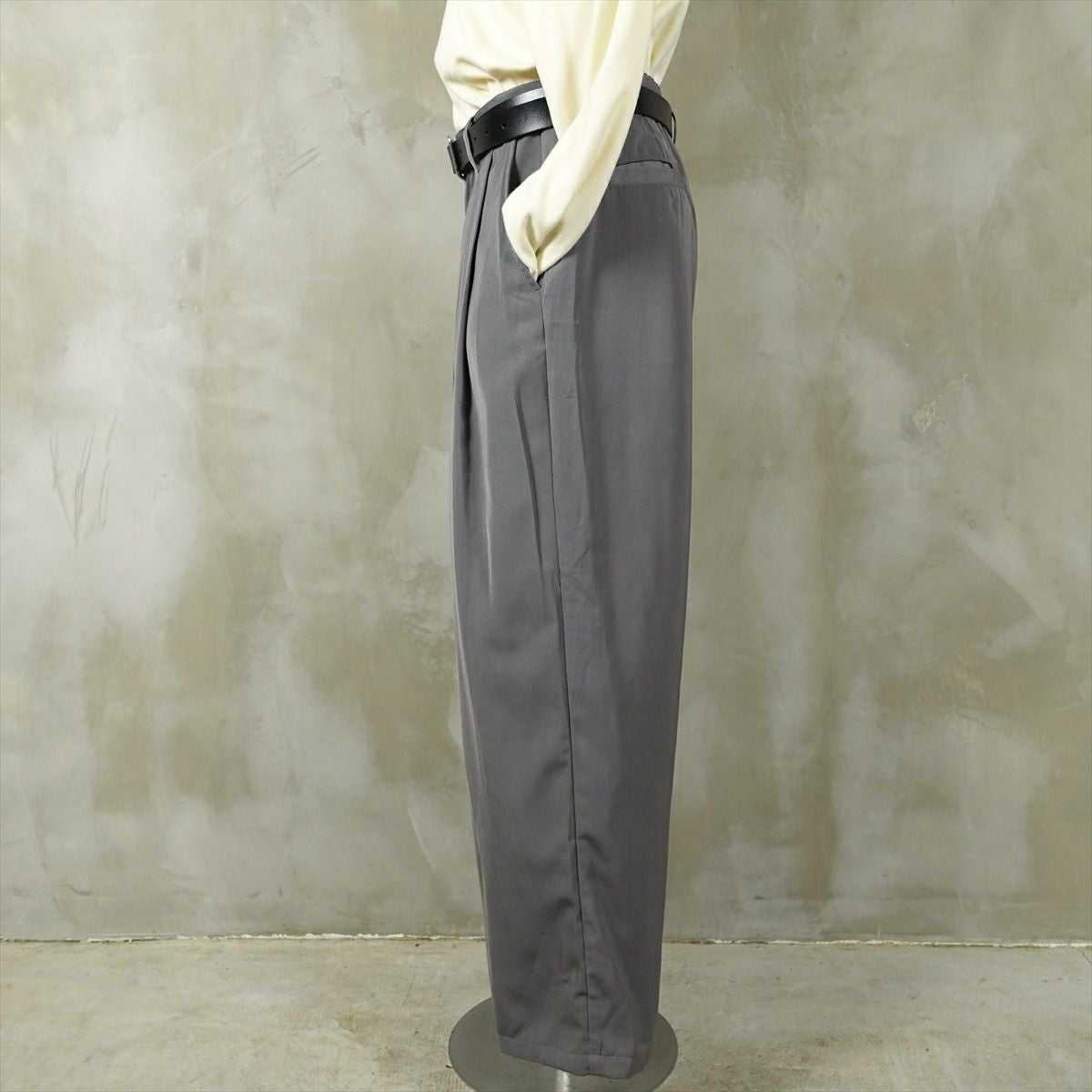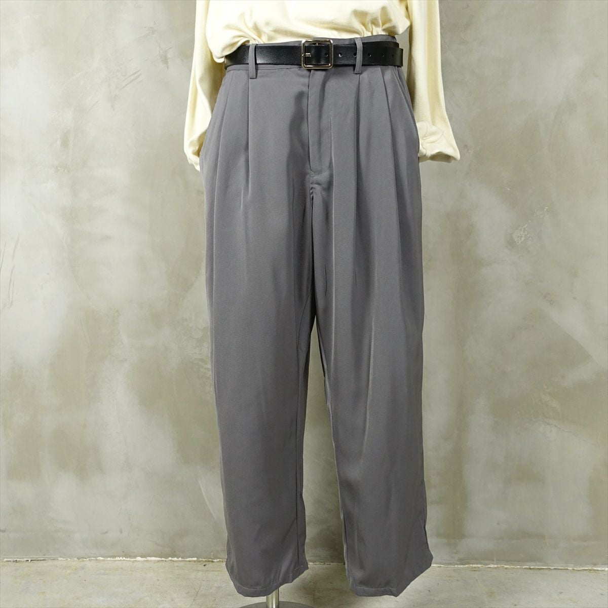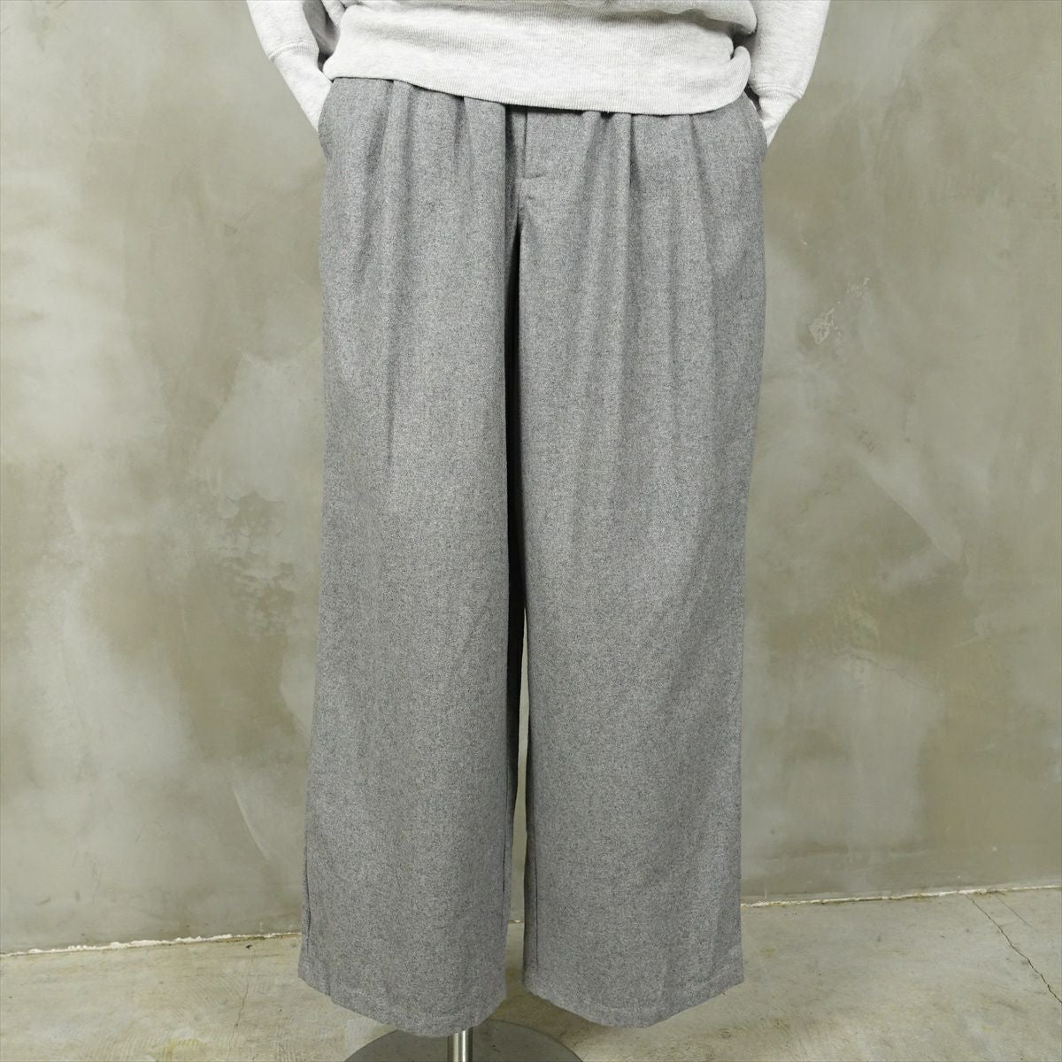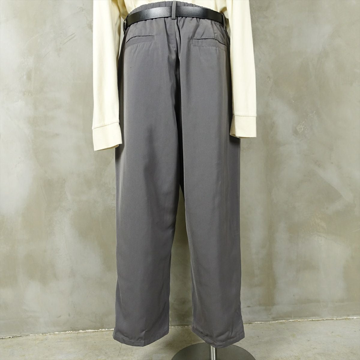 他の画像を見る fafatt ファファット ウールスラックス 販売価格 ¥ 7,480 税込 ナイロン感があるポリエステルを使用したワイドスラックスです。光沢により表情が出るのでコーディネートのアクセントになります。中間色のグレーなのでどんな色でも相性がいい為、普段使いの万能なアイテムとしていかがでしょうか カートに入れる お気に入りに登録する
