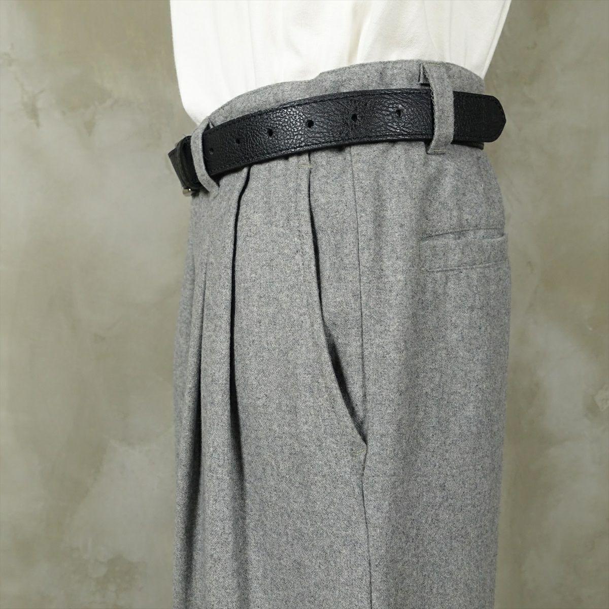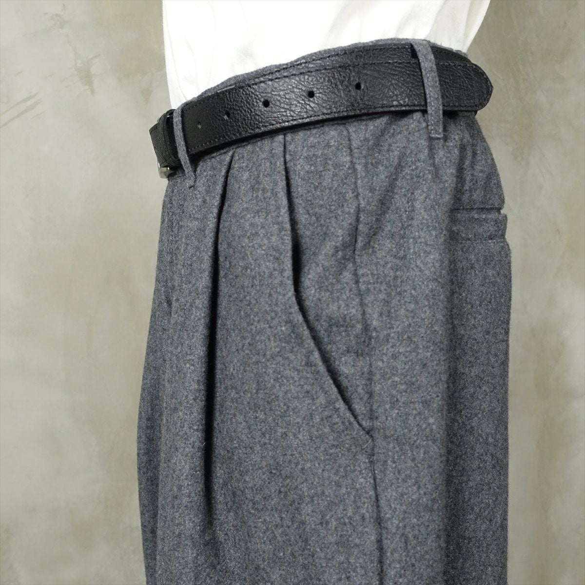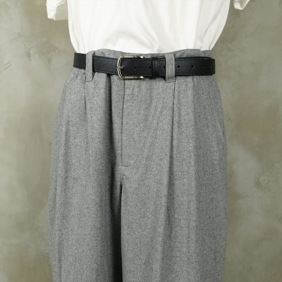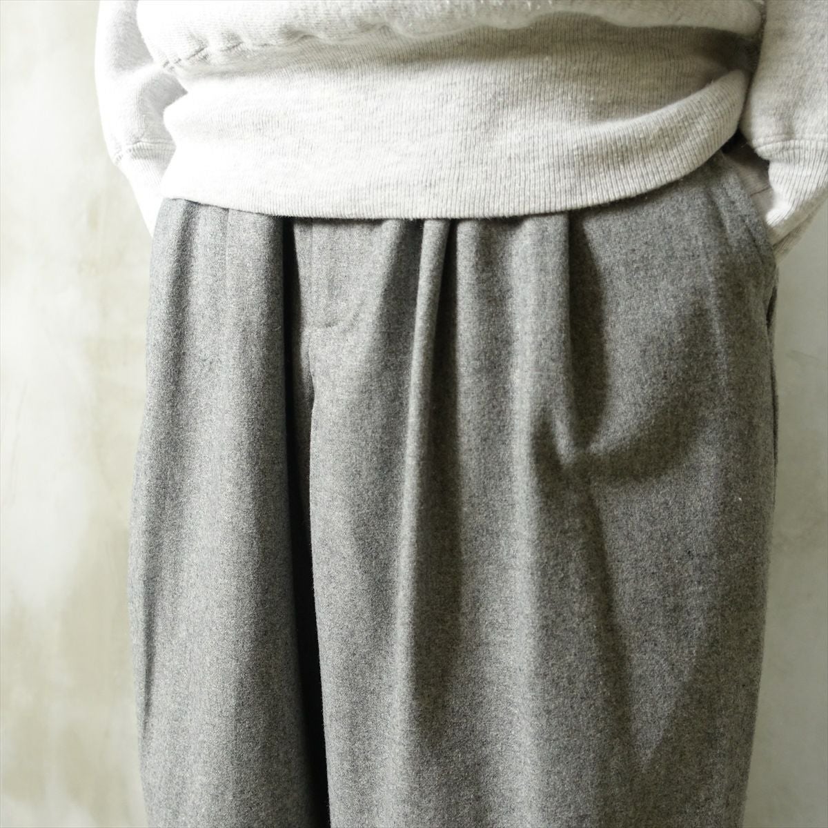 他の画像を見る fafatt ファファット スラックス 販売価格 ¥ 6,380 税込 ウールとポリエステル50%の秋冬向けスラックスです。しっかりとした裏地が付いているのでウール特有のチクチク感がなくサラッとご着用頂けます。フロントにタックが入っているのでシルエットも綺麗です。中間色のグレーなのでどんな色でも相性が良いため普段使いの1着としていかがでしょうか カートに入れる お気に入りに登録する