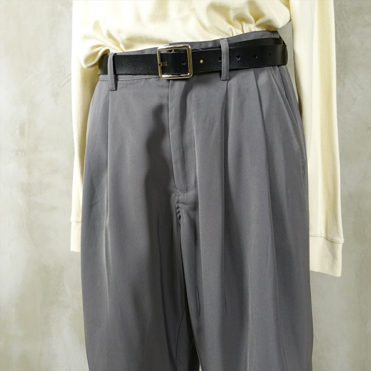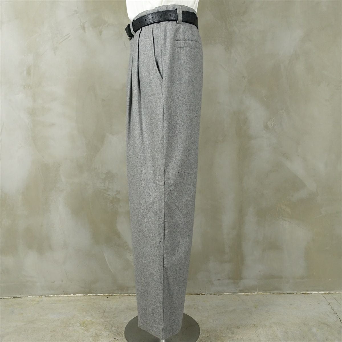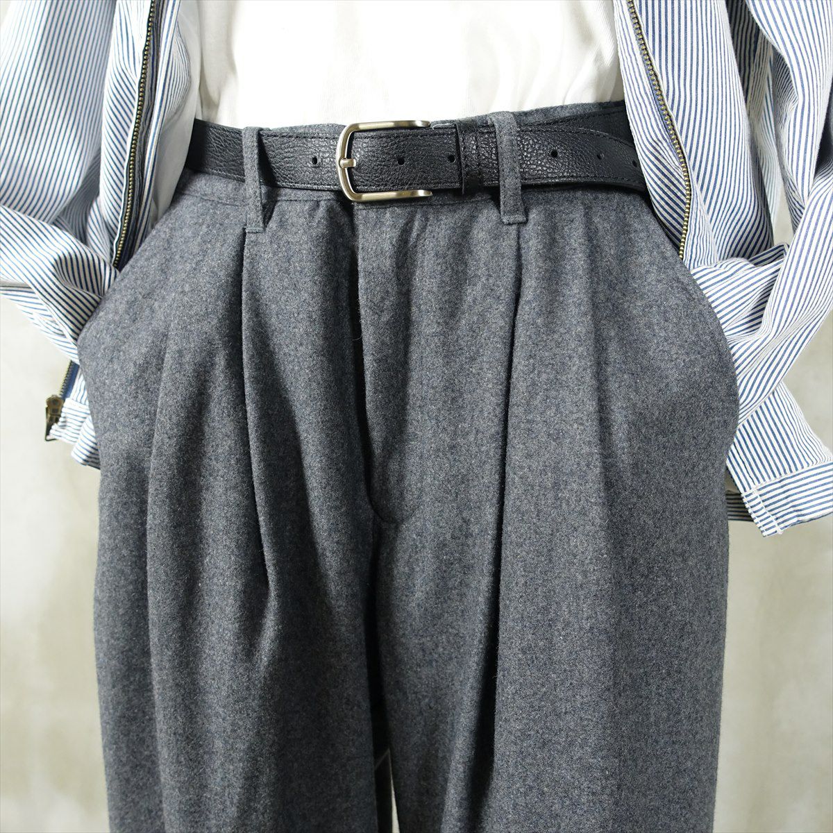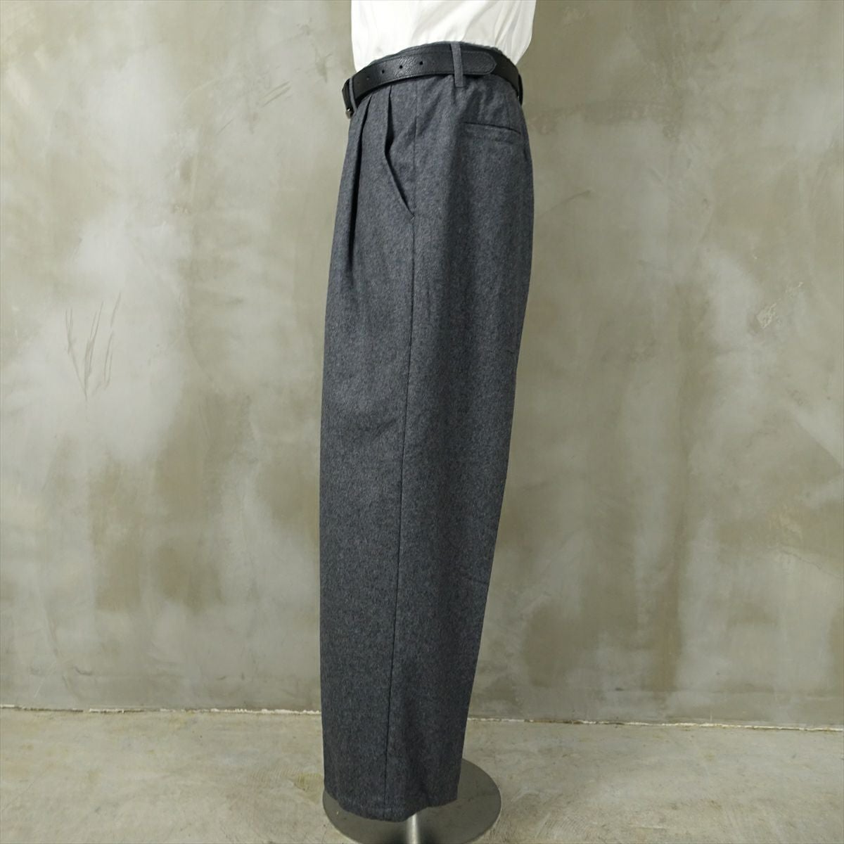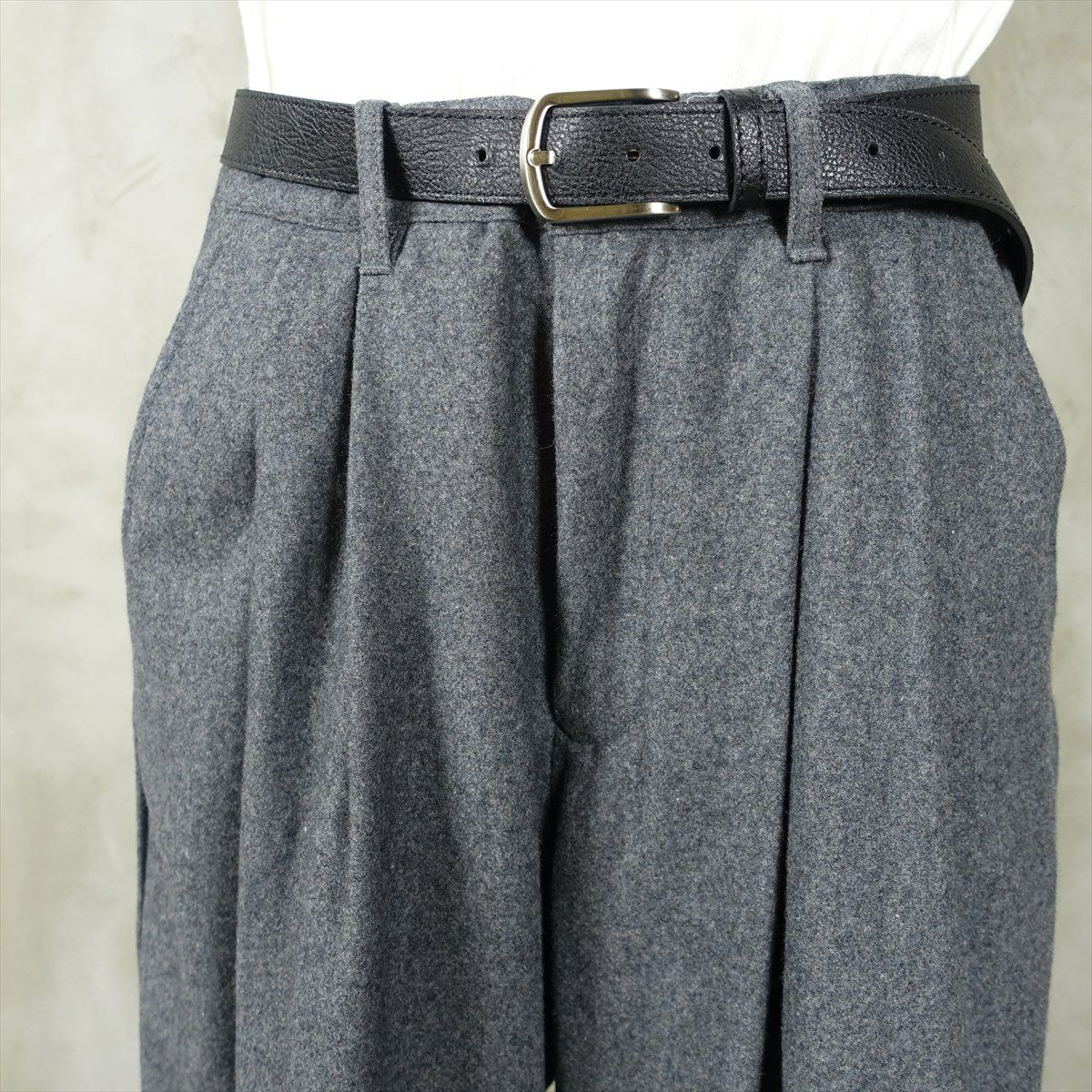 他の画像を見る fafatt ファファット スラックス 販売価格 ¥ 6,380 税込 ウールとポリエステル50%の秋冬向けスラックスです。しっかりとした裏地が付いているのでウール特有のチクチク感がなくサラッとご着用頂けます。フロントにタックが入っているのでシルエットも綺麗です。中間色のグレーなのでどんな色でも相性が良いため普段使いの1着としていかがでしょうか カートに入れる お気に入りに登録する