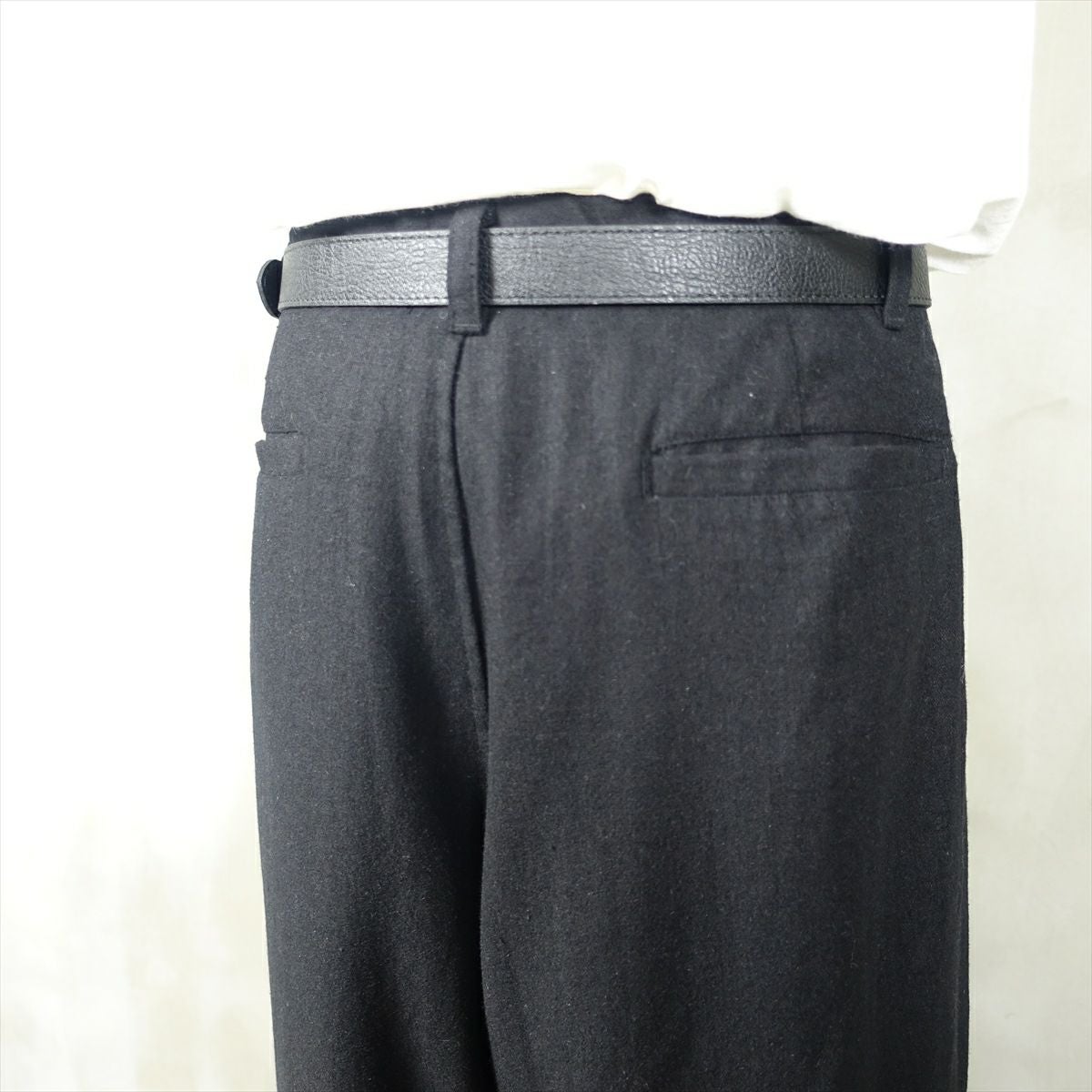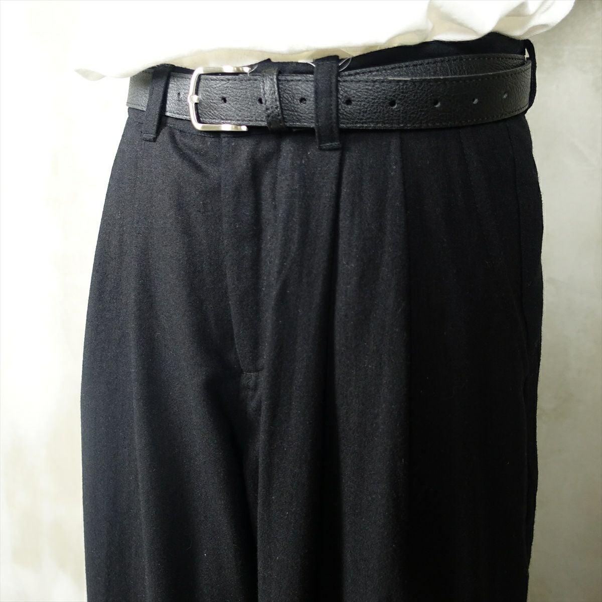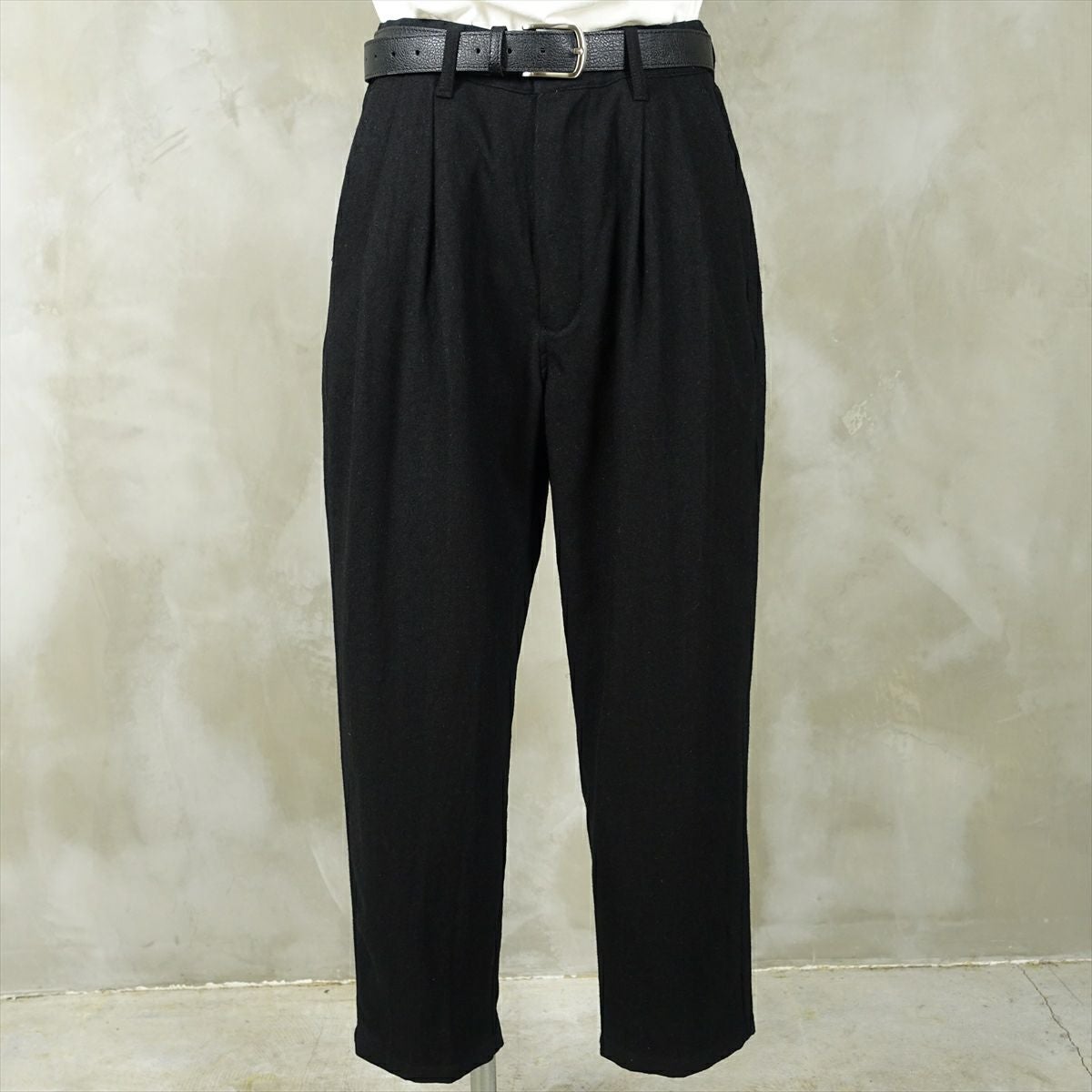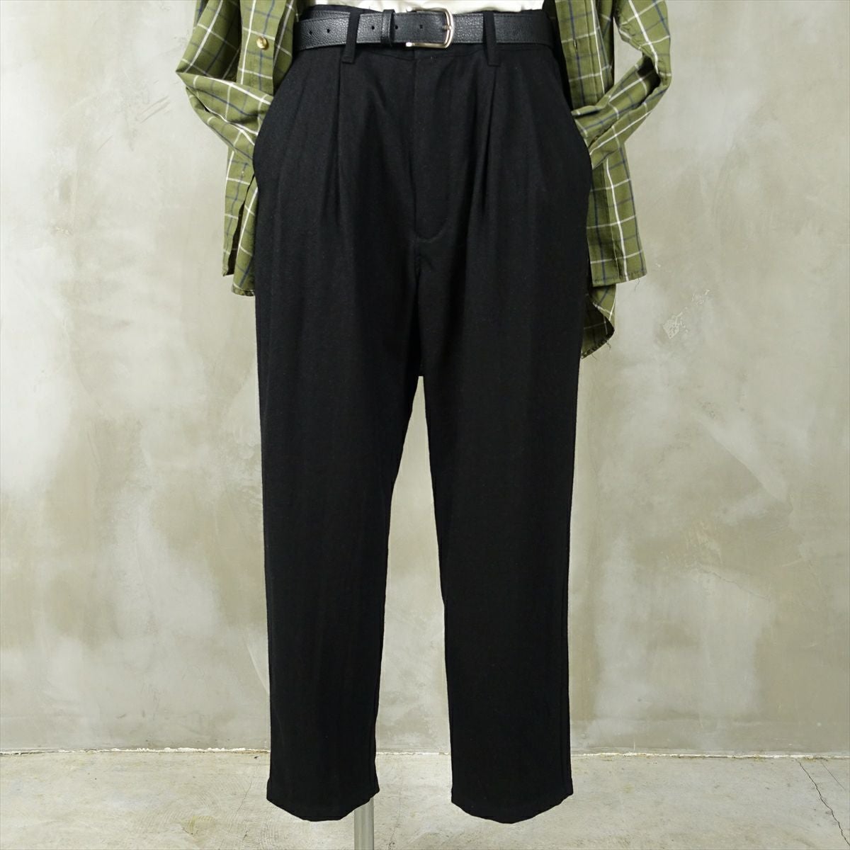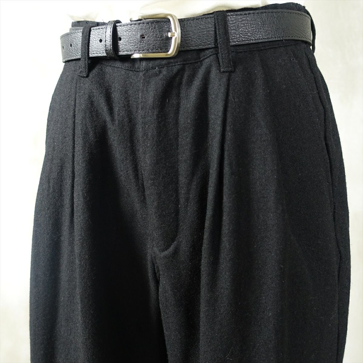 他の画像を見る fafatt ファファット ウールスラックス 販売価格 ¥ 7,480 税込 ウールとポリエステル50%の秋冬向けスラックスです。しっかりとした裏地が付いているのでウール特有のチクチク感がなくサラッとご着用頂けます。フロントにタックとプレスが入っているのでシルエットも綺麗です。万能な黒なのでコーディネートに困ってもこれ1枚でまとまります。普段使いの1着としていかがでしょうか カートに入れる お気に入りに登録する