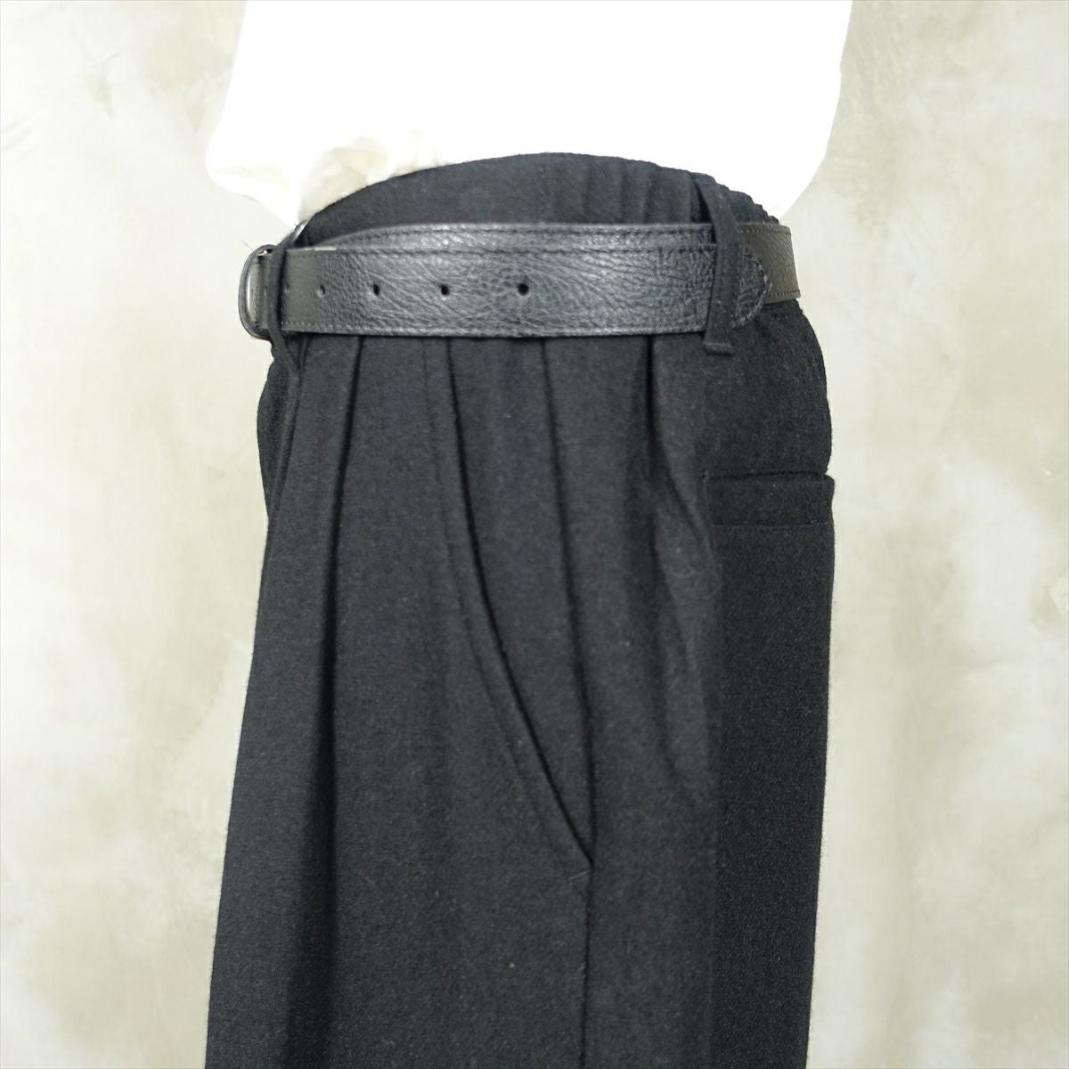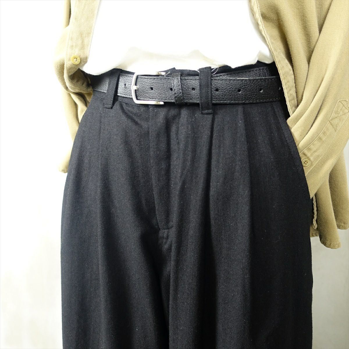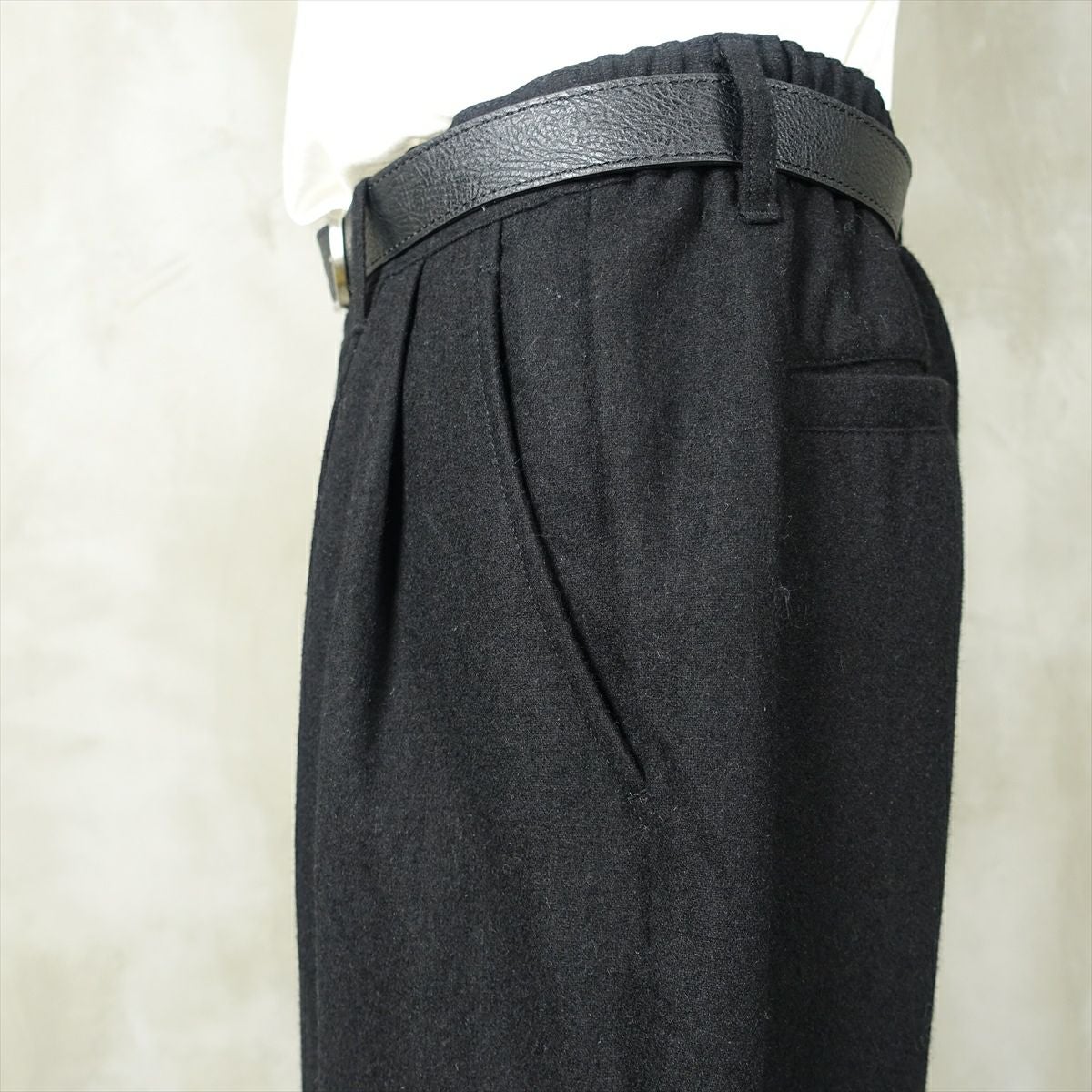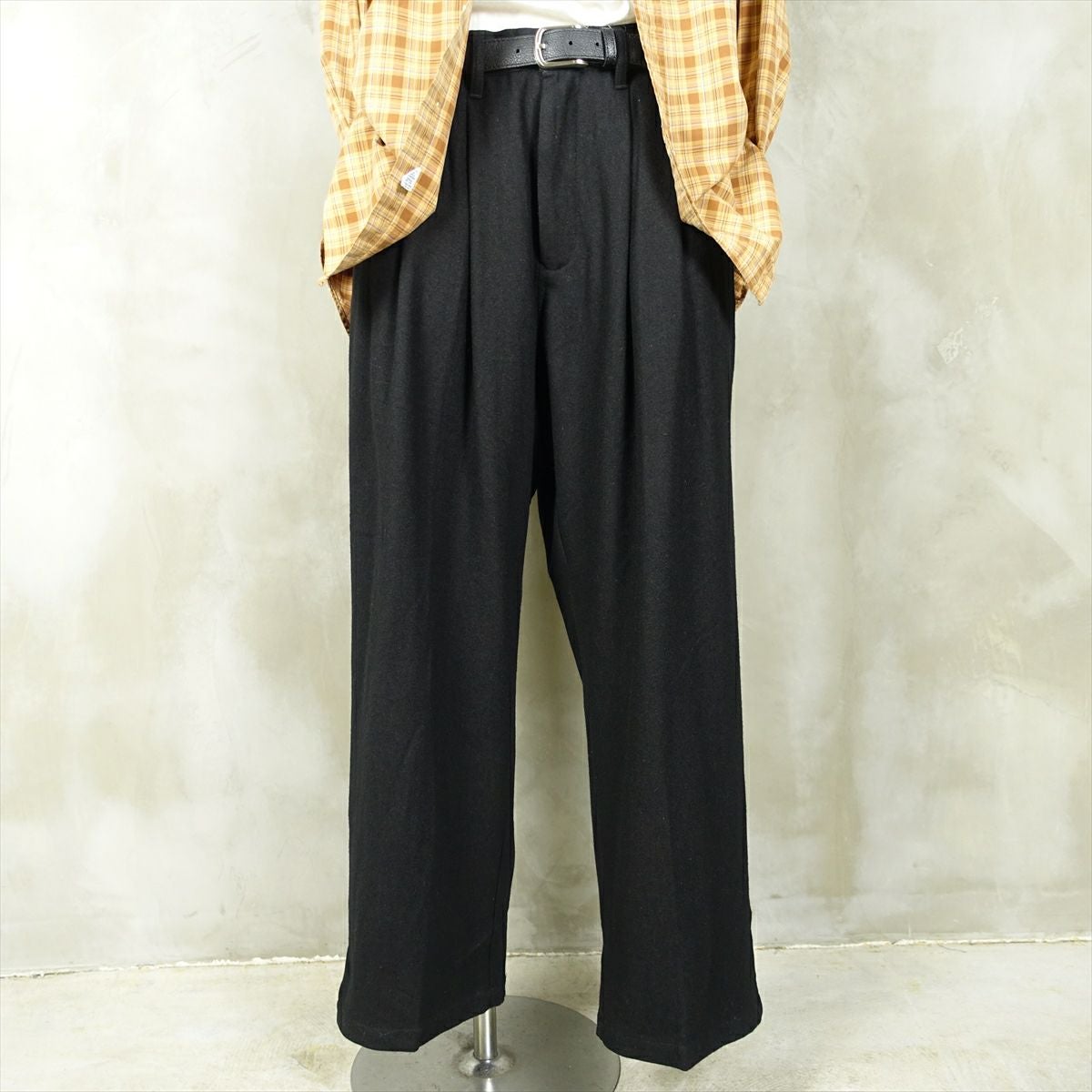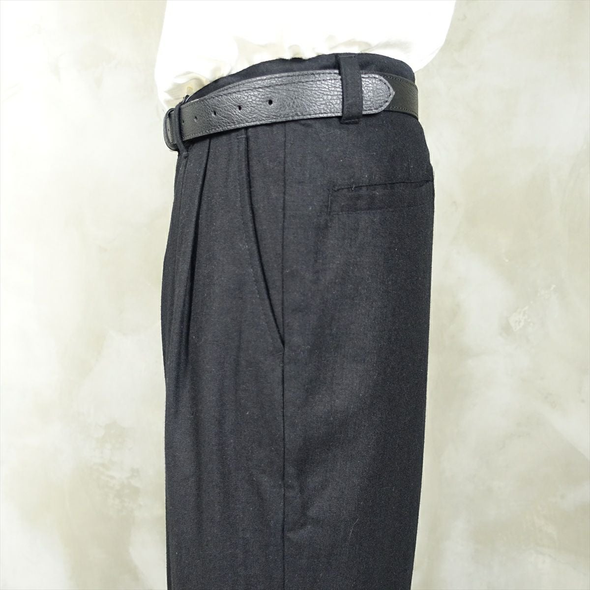 他の画像を見る fafatt ファファット ウールスラックス 販売価格 ¥ 7,480 税込 ウールとポリエステル50%の秋冬向けスラックスです。しっかりとした裏地が付いているのでウール特有のチクチク感がなくサラッとご着用頂けます。フロントにタックとプレスが入っているのでシルエットも綺麗です。万能な黒なのでコーディネートに困ってもこれ1枚でまとまります。普段使いの1着としていかがでしょうか カートに入れる お気に入りに登録する