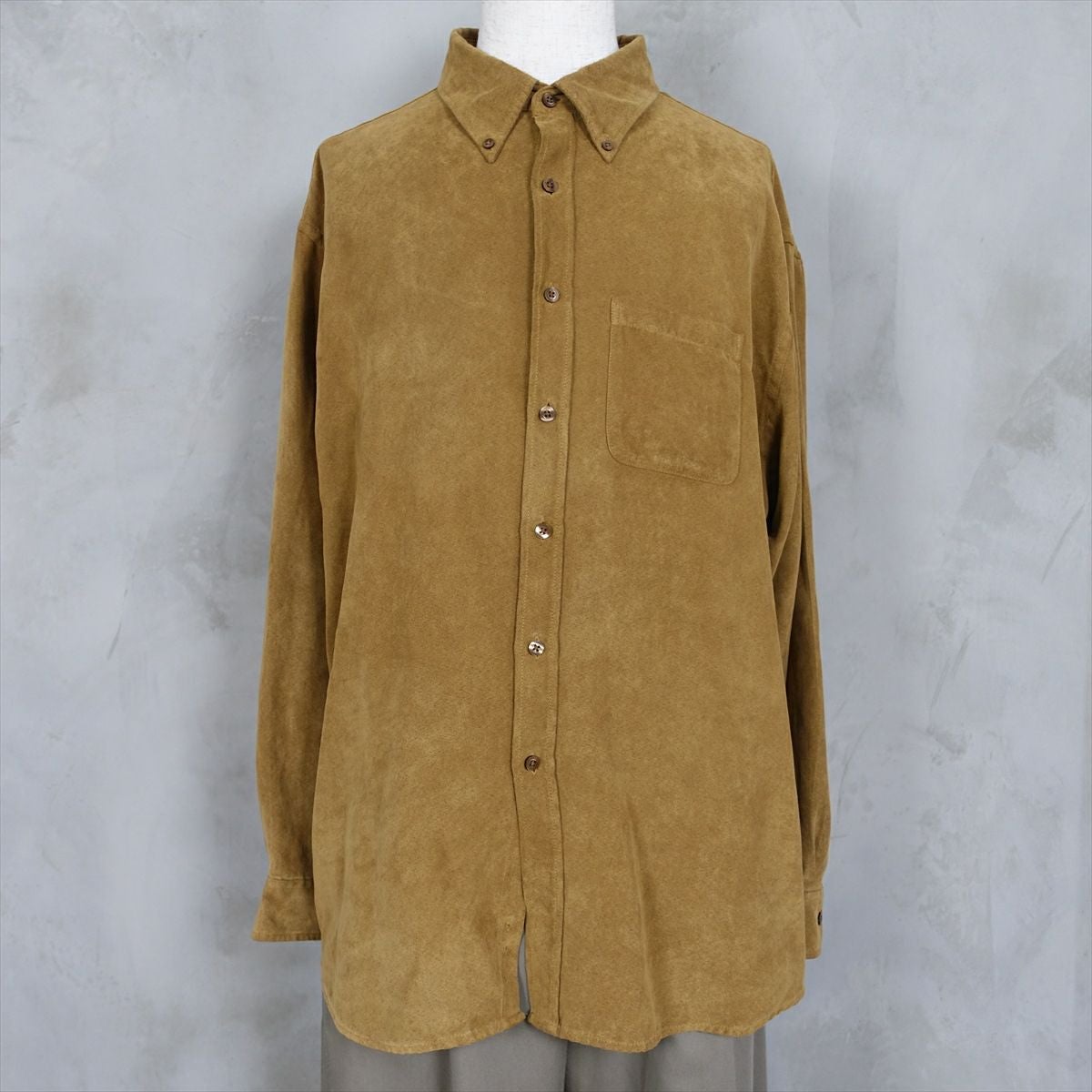 古着 フェイススエード 無地 長袖シャツ