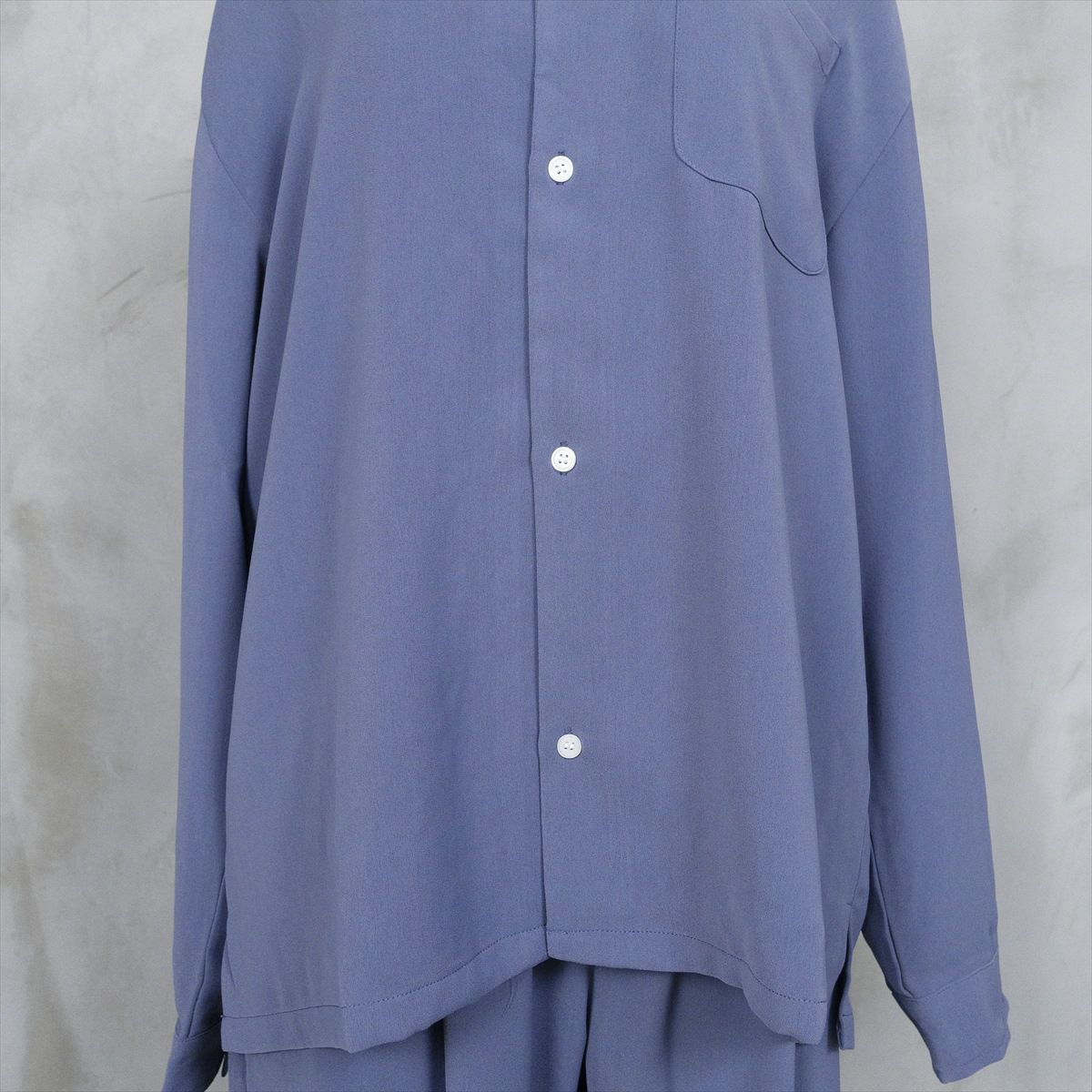 他の画像を見る Fafatt ファファット くすみブルーピーチスキンオープンカラーシャツ CLEARANCESALE 50%OFF! 通常販売価格 ¥ 6,380 のところ 販売価格 ¥ 3,190 税込 サラッとした質感でアイテム自体も軽く、肌触りの良いシャツです。落ち着いたカラーで、1枚で大人っぽく仕上がります。肩を落としたスタイルでも格好良く、柄物を合わせてもコーディネートが締まります。455-11とセットアップ仕様になっております。 スラックスはこちら カートに入れる お気に入りに登録する