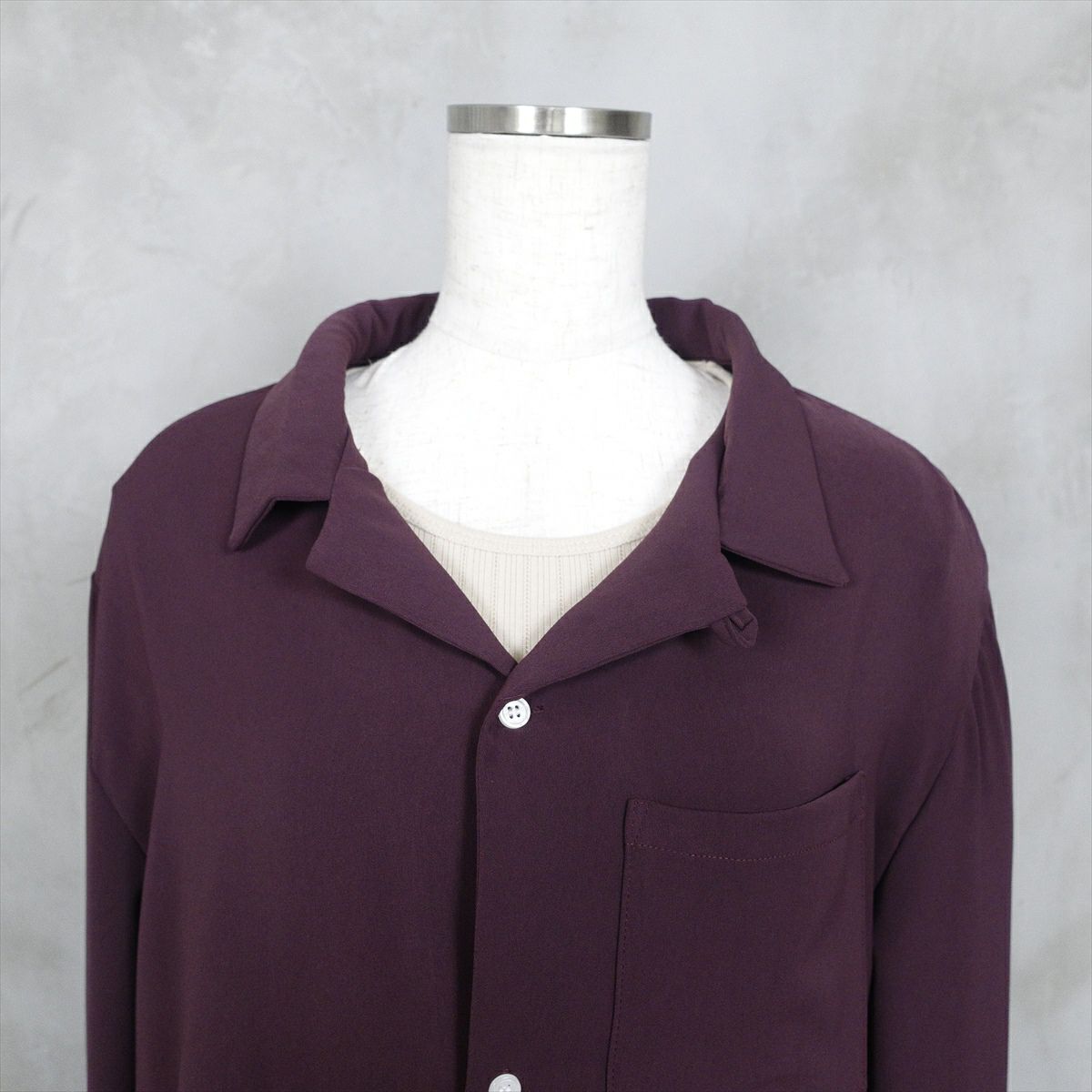 他の画像を見る Fafatt ファファット ワインレッドピーチスキンオープンカラーシャツ CLEARANCESALE 50%OFF! 通常販売価格 ¥ 6,380 のところ 販売価格 ¥ 3,190 税込 サラッとした質感でアイテム自体も軽く、肌触りの良いシャツです。落ち着いたカラーで、1枚で大人っぽく仕上がります。肩を落としたスタイルでも格好良く、柄物を合わせてもコーディネートが締まります。455-11とセットアップ仕様になっております。 スラックスはこちら カートに入れる お気に入りに登録する