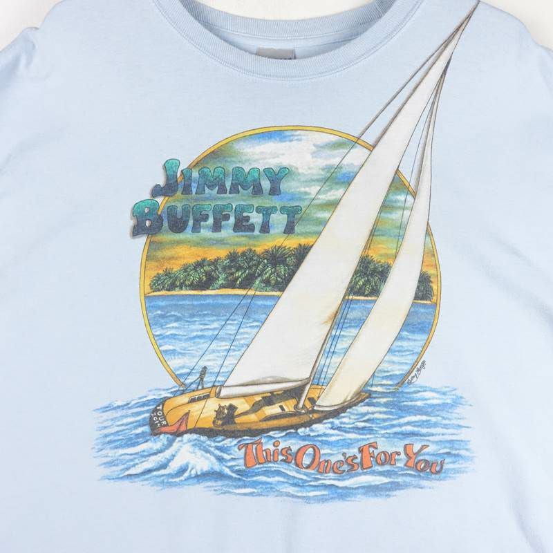 古着 GILDAN JIMMYBUFFETT 袖プリント ロンT